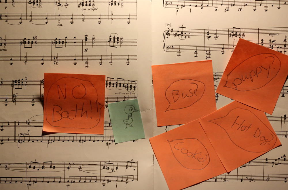 This is what happens when you are practicing the piano and your teenager decides that you should pay attention to them. I kept playing. He kept adding sticky notes. I played through the first couple of sticky notes, but eventually I did have to stop because I couldn’t remember all…