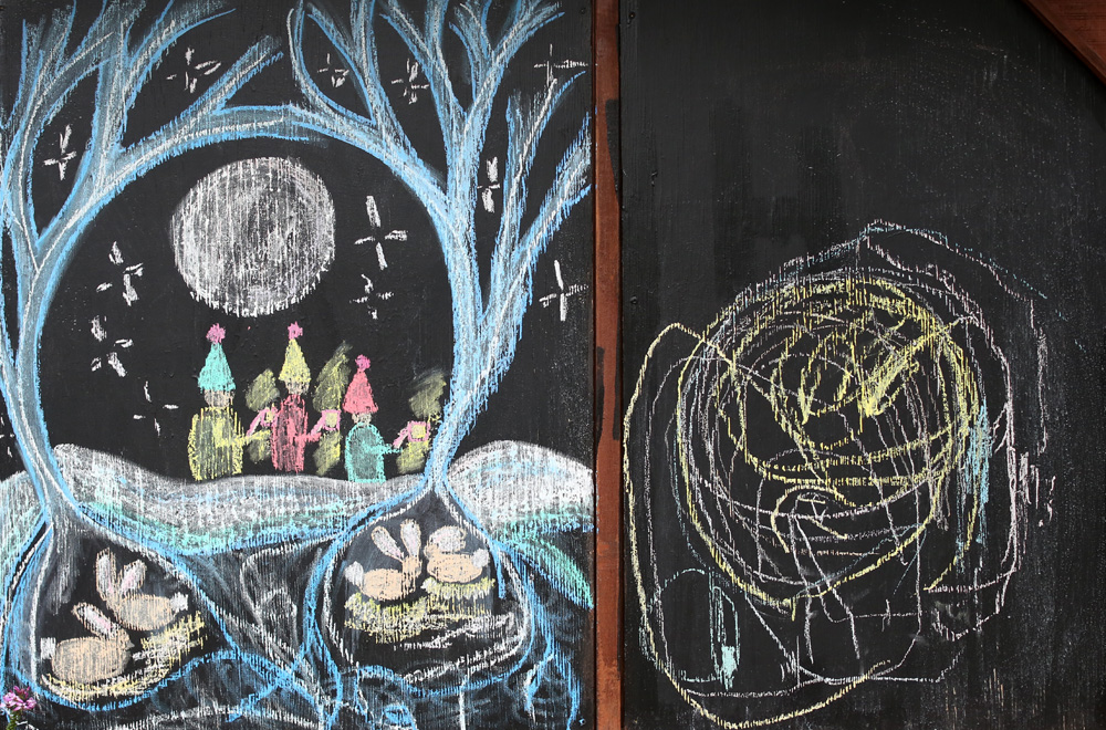 Sibling Artwork on the Chalkboard: YaYa and Peanut Maximus