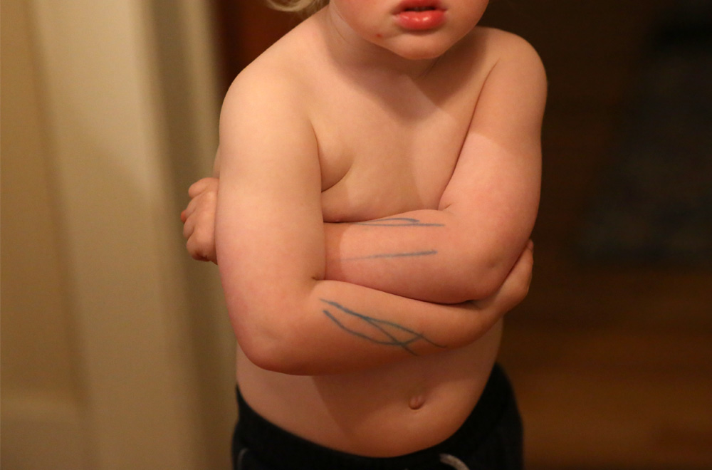 The Devious Snail, an independent adult these days, has some tattoos, the most visible being a bee on his knee. Aumnee also has a few tattoos. Last week Peanut Maximus came up to Dr. Peds to show him all the “snakes” on his arm. He said that Devious Snail has…