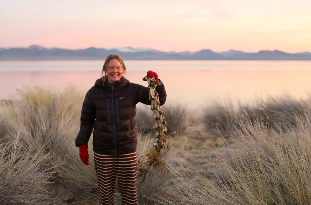 There are wild horses that roam in the region of Mono Lake, and YaYa found part of a skeleton of a horse that had met its demise. In addition, those horses leave piles of manure here and there. Most of the piles of manure looked like normal horse business. But…