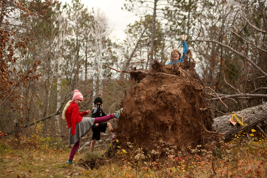 Almost all of the trees in people’s yards and along city boulevards that were topped in our huge summer thunderstorm last July are now cleaned up, and most of the trails are cleared in the forests as well. Still, while hiking along, there are just so many trees that have toppled. Big trees. Healthy trees. Sometimes one tree topped and took a bunch of others with it. Often there are huge root balls sticking in the air. It’s amazing how powerful wind can be.