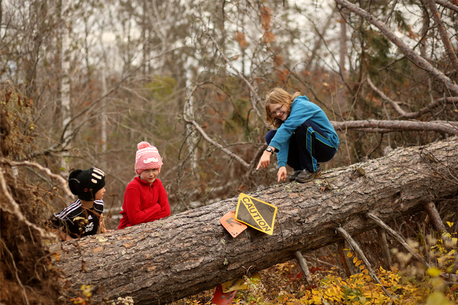 This lovely giant red pine was along a snowmobile trail, and even served as a trail marker. The kidlets thought the downed sign was kind of ironic.