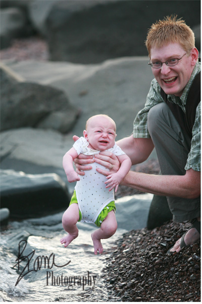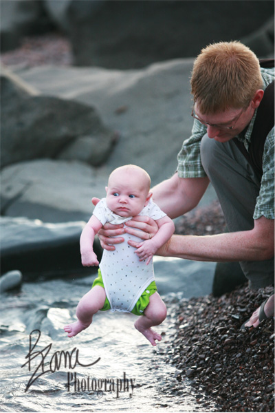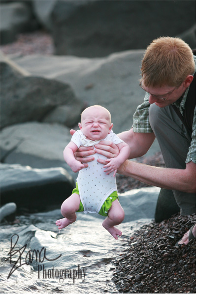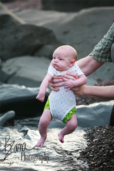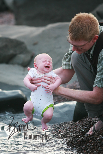 Never fear, he only cried for but just a second. It looks like he’s going to be every bit as much of a coldwater swimmer as all of the big kidlets, because although he wasn’t too happy about his very first experience with the water, the second and third dips elicited absolutely no reaction whatsoever. He just ignored the whole experience and gazed off toward the horizon peacefully.