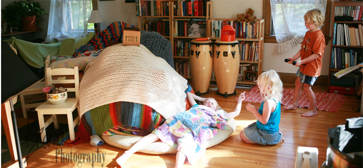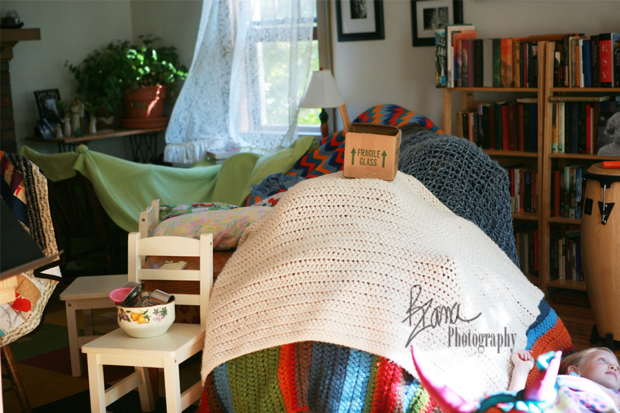 Tonight, at the end of the day, I’m reflecting on the summer, and even though I feel sad about all the things I wanted to do and didn’t (I did have a baby, after all! I do have an excuse) there were a lot of good things that came from my lethargy. For example, I was stuck on the couch, pregnant and miserable, and we read books, and books and more books. It was lovely to be snuggled up together. Ya Ya spent hours and hours reading by herself, too. I wasn’t always able to generate fun and exciting activities because I was so tired or busy taking care of Squirmy, but the kidlets did a wonderful job entertaining themselves. They built a fort out of blankets almost every other day. They built with legos, with zoob, with Tinkertoys and Lincoln Logs and wonderful wooden unit blocks. Ya Ya had all sorts of big plans about setting up towns, castles and mud kitchens, and as long as Mr. SP and The Banana did what she told them to do, they played seamlessly. When they didn’t, I did a lot of refereeing. They squabbled, and squabbled, but they got a little better at resolving squabbles themselves. They slept in every morning, and learned to clean up the table and dining room floor themselves. Those are all good things.