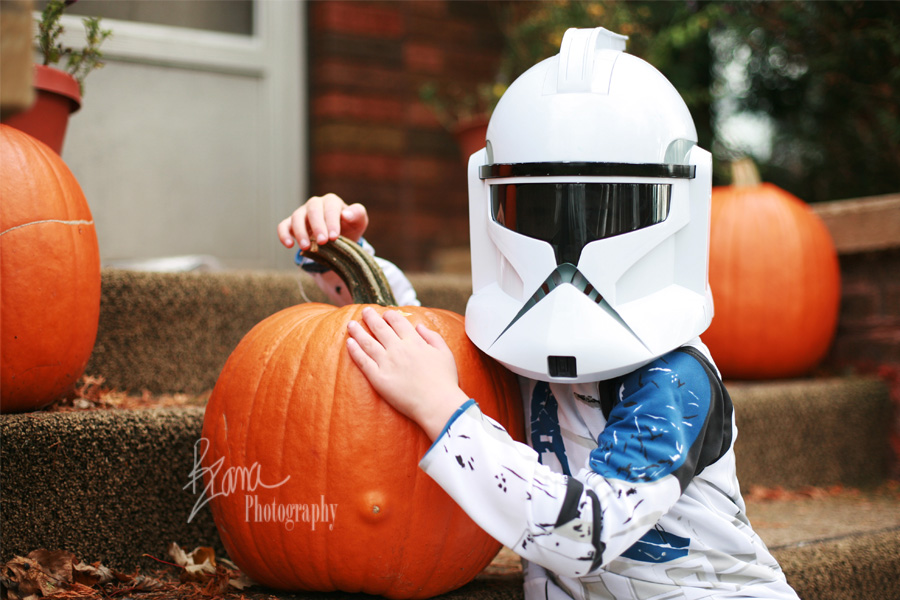 Yay! The computer is back! AND everything was rescued. I’m a happy, happy Mama. Here are some big kid costumes. Mr. Sneaky Pants was a clone trooper. He borrowed the costume from a neighbor, but the helmet is a find from the thrift store sent to us from Auntie Dot. The Banana wore a ballerina costume to the Boo Ball at preschool, but wisely decided that costume was too cold to go trick or treating in, so she pulled out warm and fuzzy lion costume on Halloween evening. Ya Ya made her own rabbit costume by fashioning some great ears from cardboard (go figure) and duct tape, with a little lace. She was excited about using face paint for her nose and whiskers. The costume creating process was very different this year. Everyone had their own ideas of things to use from our own costume box, and I really had very little to do with any of the deciding or creating. It was a bit strange for me at first, but really fun to watch the kidlets come up with things.