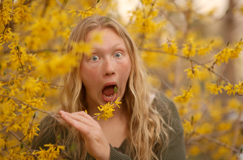 Mother’s Day Portraits: Kidlet 3 and a Forsythia Bush