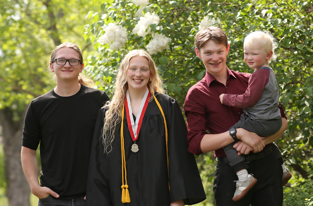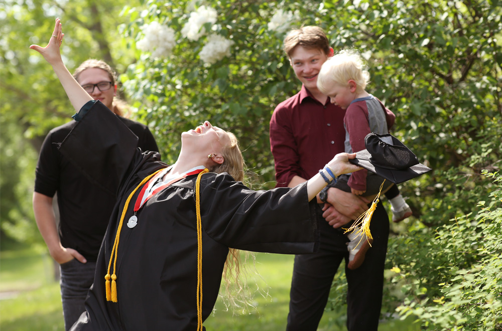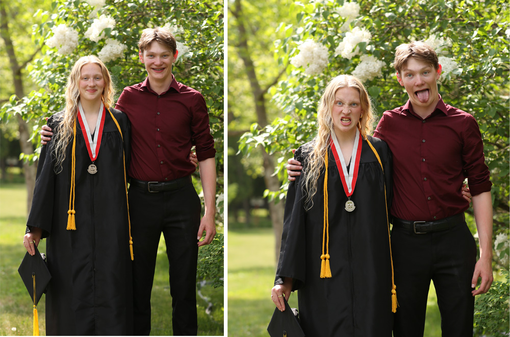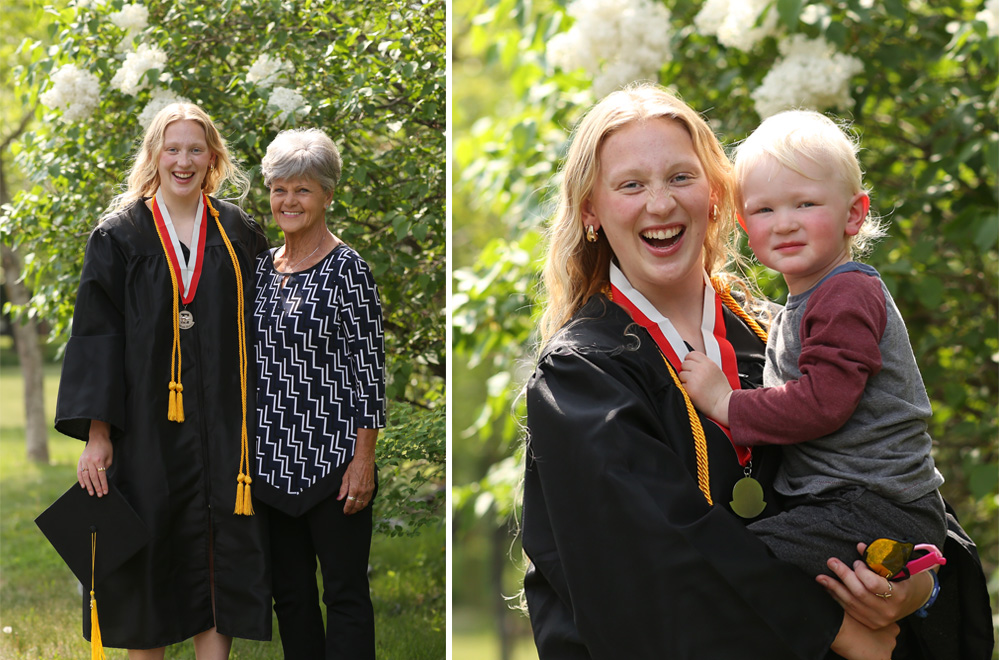 It has become a bit of a tradition to take some pre-graduation ceremony pictures in front of the white lilac bush at home before the graduate leaves for the ceremony (they have to be there super early!). Grandma Robbie made the long drive for graduation day, and we snuck Peanut Maximus in for a few images as well, even though he had just gotten up from his nap and was not very excited about anything at that moment.