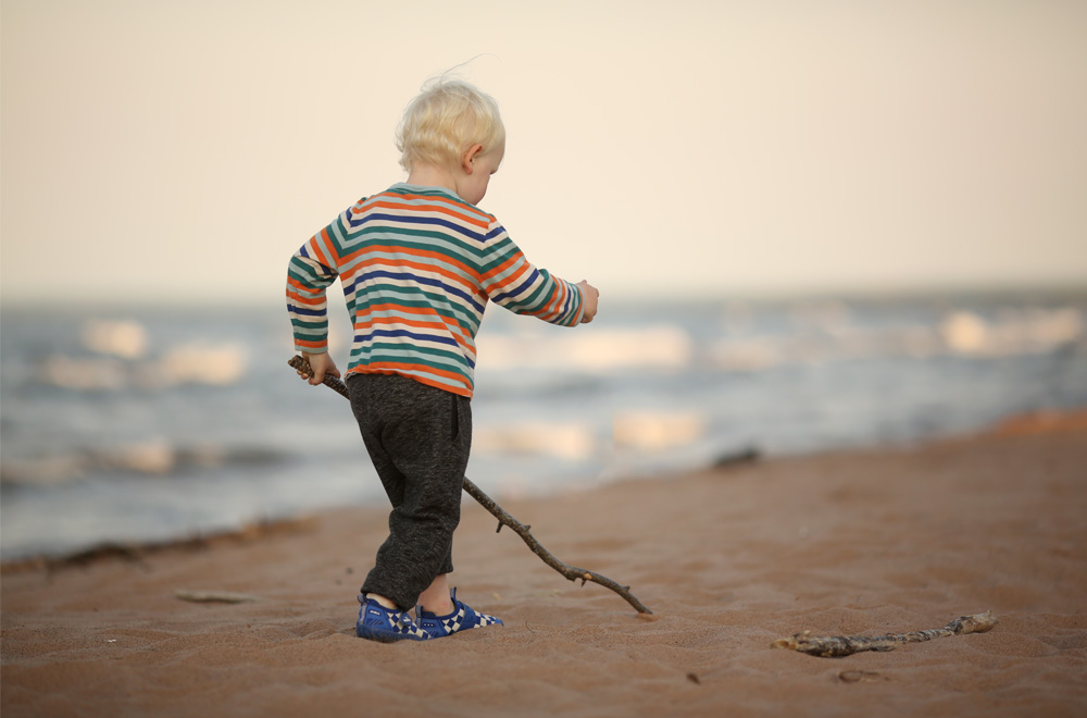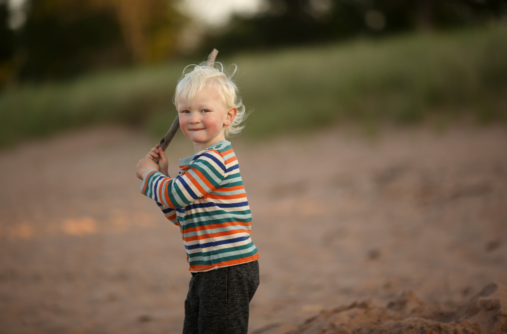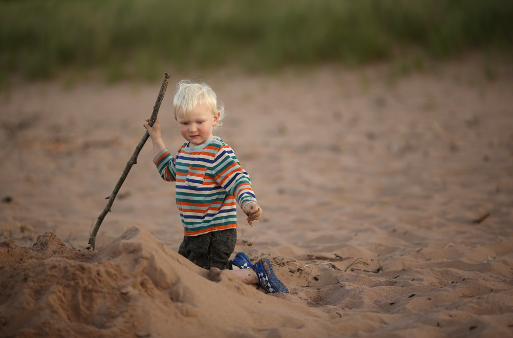 He found a couple of sticks, and they made great pretend baseball bats. He also loved drawing long lines in the sand with them.