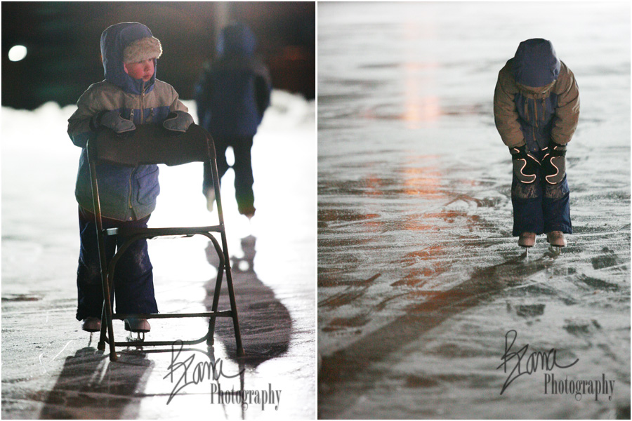 It was 23 degrees out yesterday,which felt lovely and balmy and just right for ice skating, so after school when all the homework was finished, the kidlets and I bundled up and grabbed the skates and away we went. The Banana has been watching all the kids skating at the elementary school when we pick up Mr. SP every day at noon, and she has been itching to try skating herself after Mr. SP met with success a few weeks ago. YaYa’s skates from last year fit her perfectly (YaYa has small feet. The Banana has big feet). We talked about falling, and how you have to fall a lot when you are learning to skate. She was not deterred, and for good reason. The Banana turned out to be an awesome little skater.