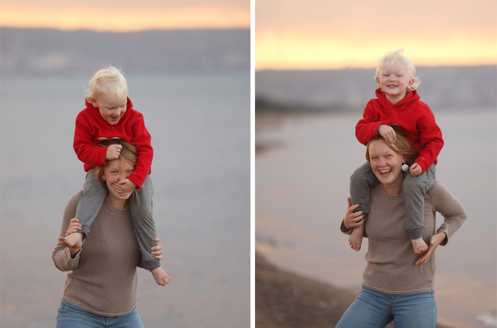 YaYa was visiting! We needed to drop off Mr. TOF at a rowing banquet and pick him back up after about an hour, so we decided to stay down at the sandy beach. The weather was a lovely temperature, although there was a brief rain shower, which made for some excellent cloud watching, and the light over the water was super fun to observe.