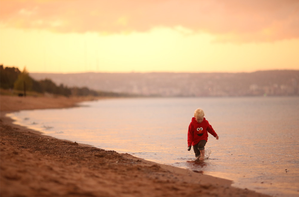 Peanut Maximus had a fantastic time marching through the sand, wading into the water, chasing his biggest sister.