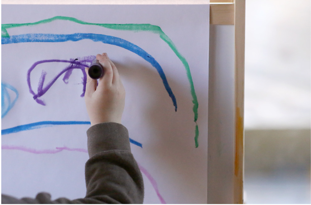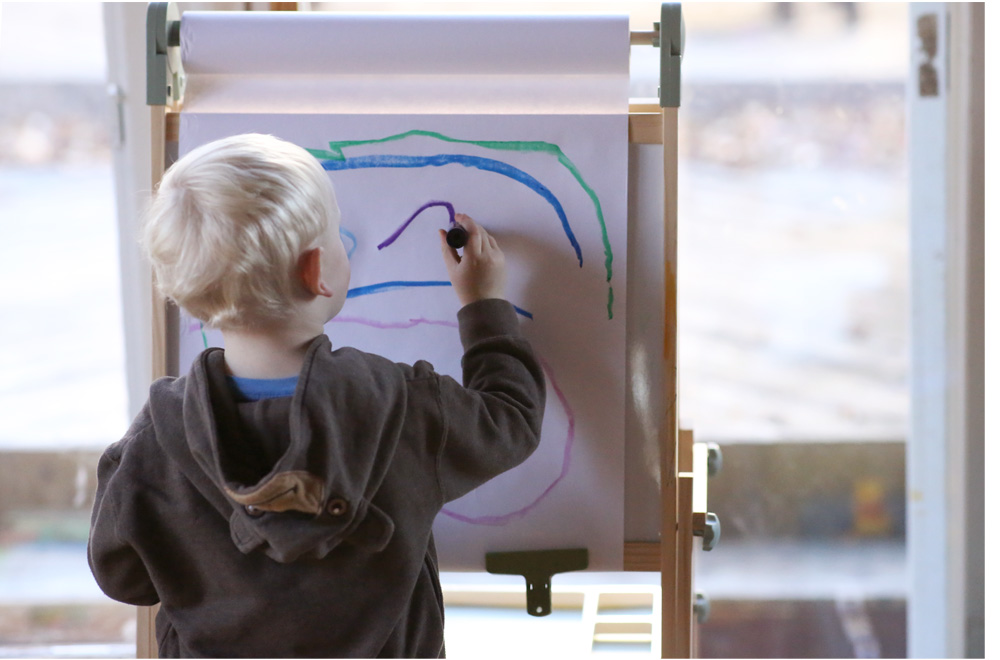 Watching the development of artistic expression in children just never gets old to me! It’s so fascinating to see how lines turn into heavy circular indiscriminate scribbles, and then into singular intentional curves and a combination of curves, lines an corners, and then those turn into representative objects.