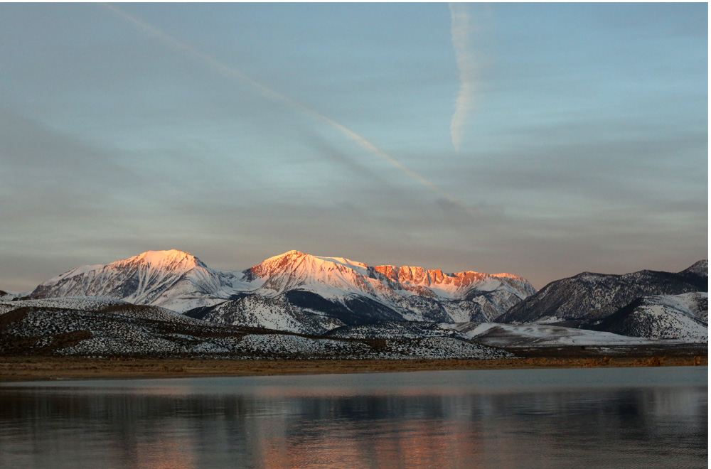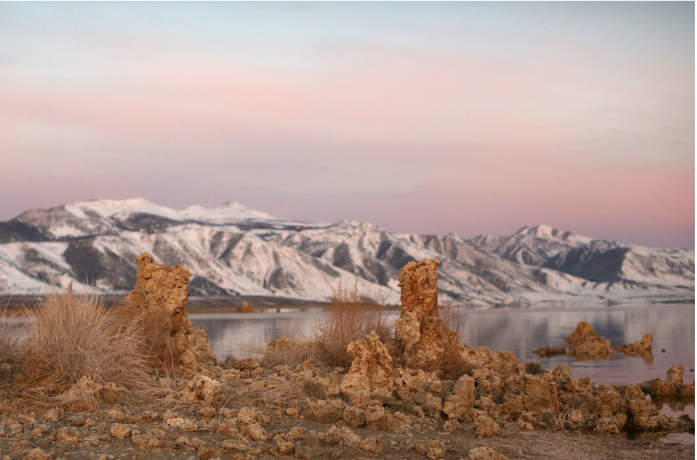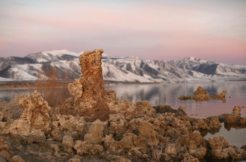 A cold February morning is the perfect time to visit Mono Lake! The sunrise was spectacular! All the reptiles that I’m sure live here were hibernating or resting because the temperature was below freezing. Mono Lake is known for a special prolific breed of fly that spends a large portion of its life swimming in the water, and that fly attracts thousands of birds. There were no birds, but we saw some awesome frozen bird tracks. I was happy that the flies were also hibernating, as I just have no need to see clouds of flies.