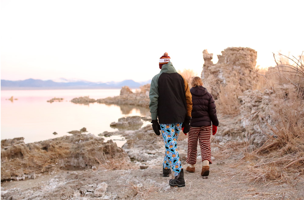 Because of the impending megasnowstorm, YaYa declared the day after we arrived to be Scenic Driving Day. She happily woke up her brother far before dawn, and we piled into her car to drive just a bit to Mono Lake at sunrise. It was amazing. Mono Lake is a crazy environment, a salty lake in the dessert at the bottom of beautiful mountains. There are crazy rock formations that were created when freshwater bubbled up from hot springs in the lakebed and met the super salty lake water at the vents. The rock formations looks small from a distance next to the mountains, like they might come up to your knees, but when you get close, they tower over your head.