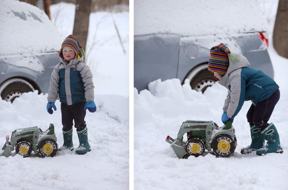 There has been a lot of snow shoveling, snow pushing, and snow blowing in the last week, and this little guy has been helping with his shovel. He also likes to pretend that he is running is “own snowblower.” It is surprisingly more effective than you would think. Also, he has an uncanny efficiency with his snow shovel for someone his size.