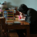 Although it would be perfect in the family room where playing happens the most, there isn’t really a spot for it there. I first made Mr. TOF carry it up to my office, but it just wasn’t quite right for that space. Then I tried it at the end of the couch in the piano room. It was still not quite right, so I moved it to the dining room and put it next to the other random bookshelf in the dining room, and now it feels good. I might have to add more bookshelves in the dining room to make it feel even better! Ha!