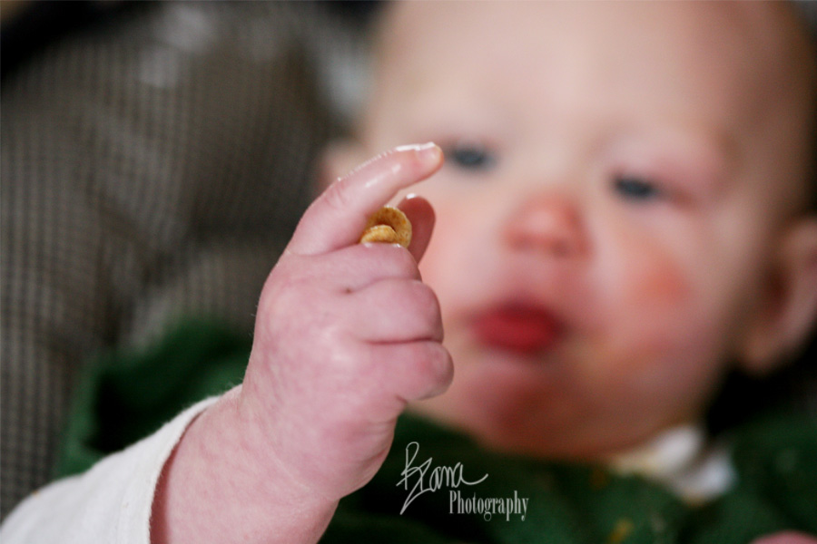 Squirmy loves sitting in his high chair and chasing Cheerios around the tray. The Banana is happy to replenish his Cheerio supply as often as he’d like. She tends to give him a handful and take a handful for herself. It’s amazing how much work picking up a Cheerio can be. It takes so much concentration! So much coordination! So much patience and determination! It keeps him busy for a long stretch of time, and I’m so very grateful, because it makes cooking for the other kidlets so much easier when he’s not fussy or underfoot in the kitchen.