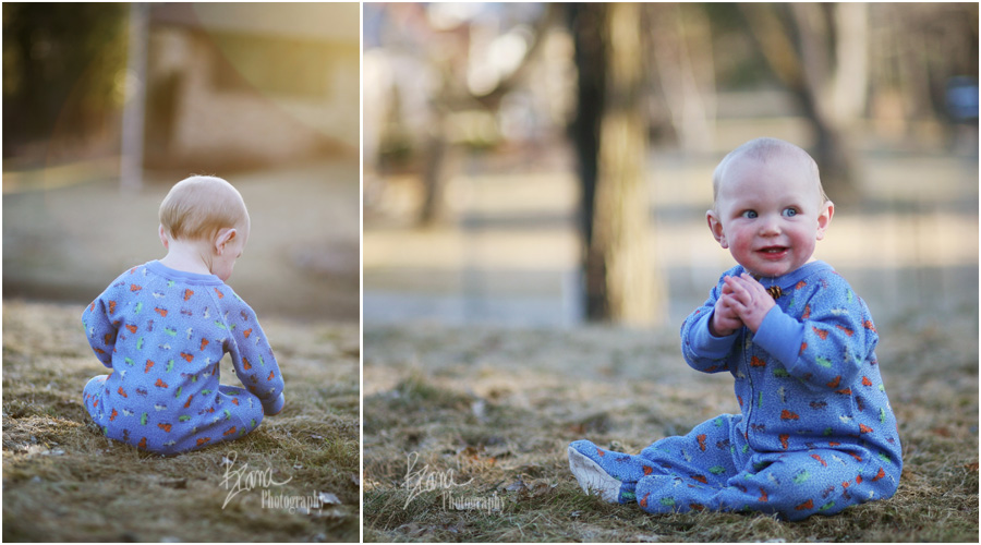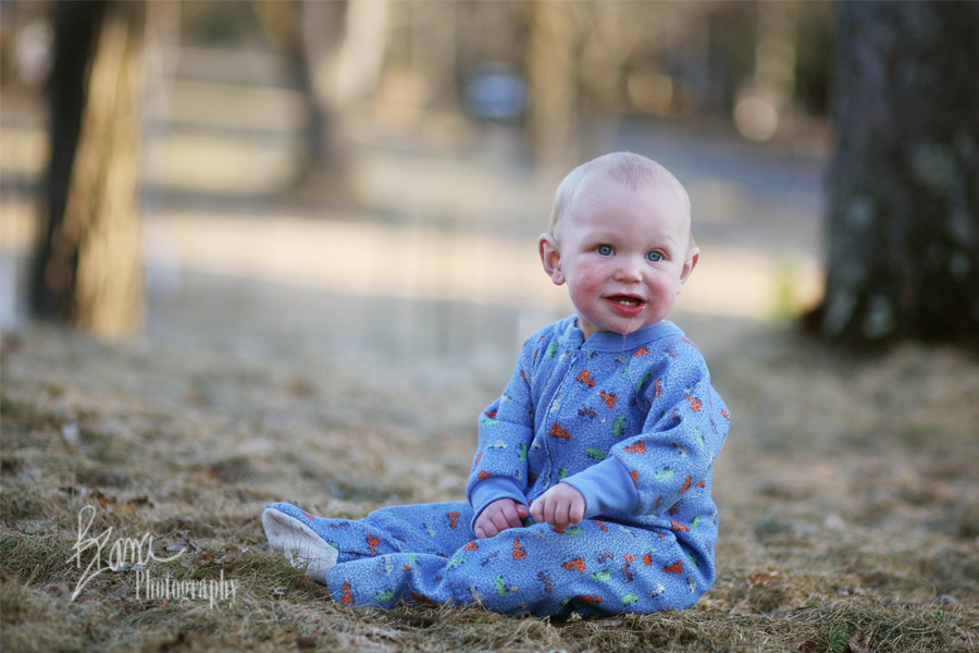 Every waking moment he’s busy. Either he’s on the go on the floor, scooting all over on his hands and knees, climbing up on small platforms (like the trampoline) and chasing the people he loves, or he’s busy picking up things with his tiny fingers.