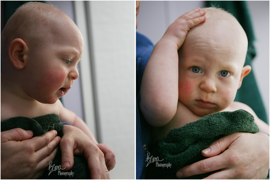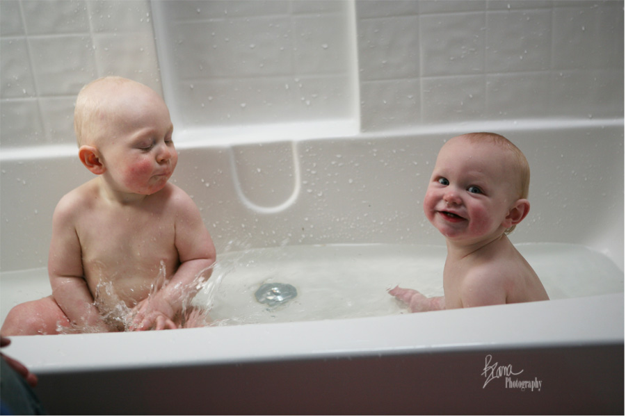 Of course, after all that puddle fun, he needed to have a bath, and since Squirmy loves a bath as well and couldn’t bear to stay out of the bathroom when Alex was doing all that splashing, we just stuck the two of them in the bathtub together. Check out how thrilled Squirmy was to be included.