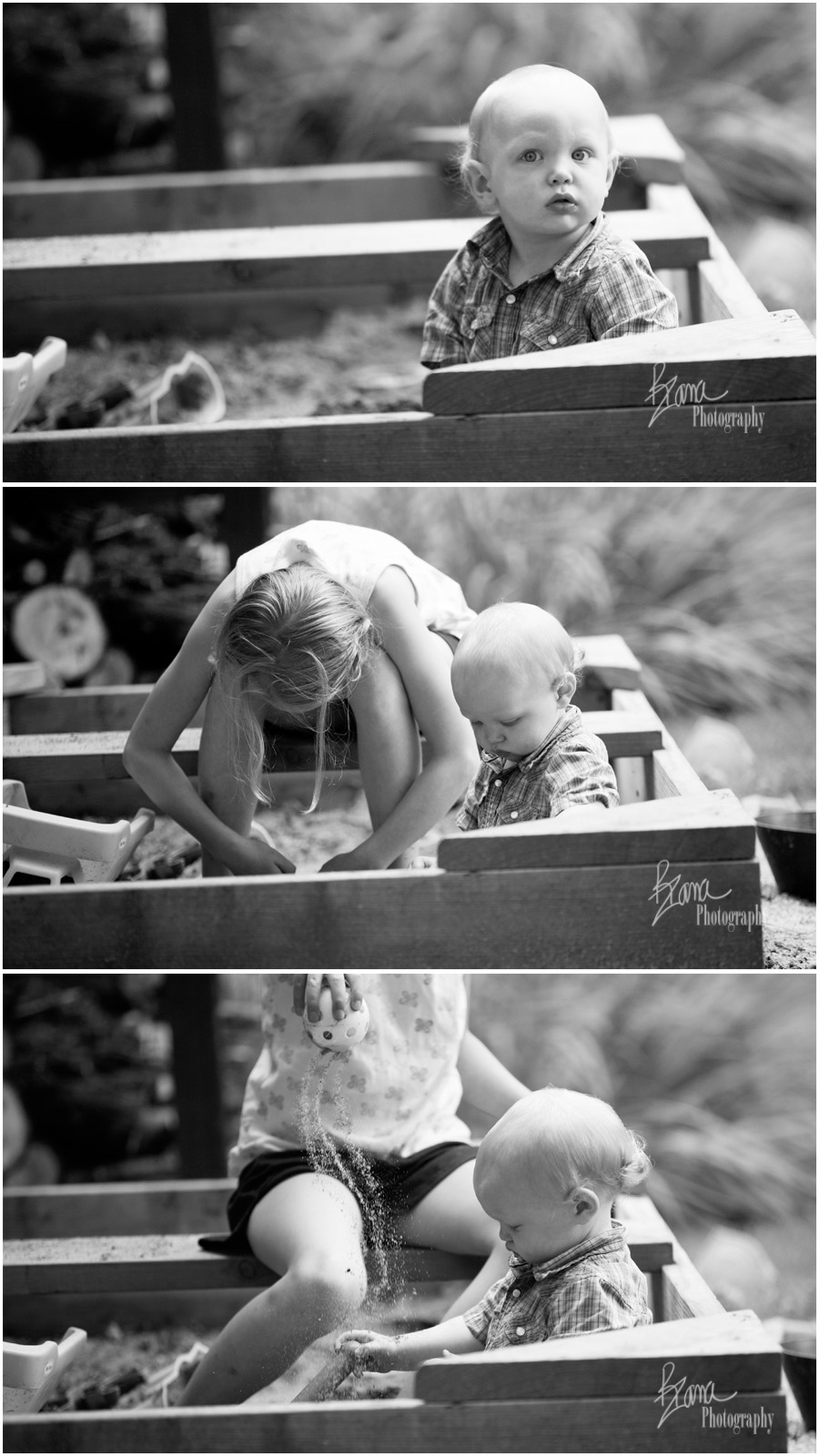 The Sandbox has turned out to be Squirmy’s new favorite place in the yard. He stood outside the box for the longest time, playing with the toys he could reach and running his hands through the sand. Eventually one of those kindhearted big sisters had pity on him and lifted him inside the box, which was even better. Because the sandbox is surrounded by grass, we know that Squirmy is not going anywhere anytime soon. He just stays right there and happily plays. It’s a great deal for me, because the sandbox is cleverly placed very near my hammock. Ah! Lazy summer afternoons!