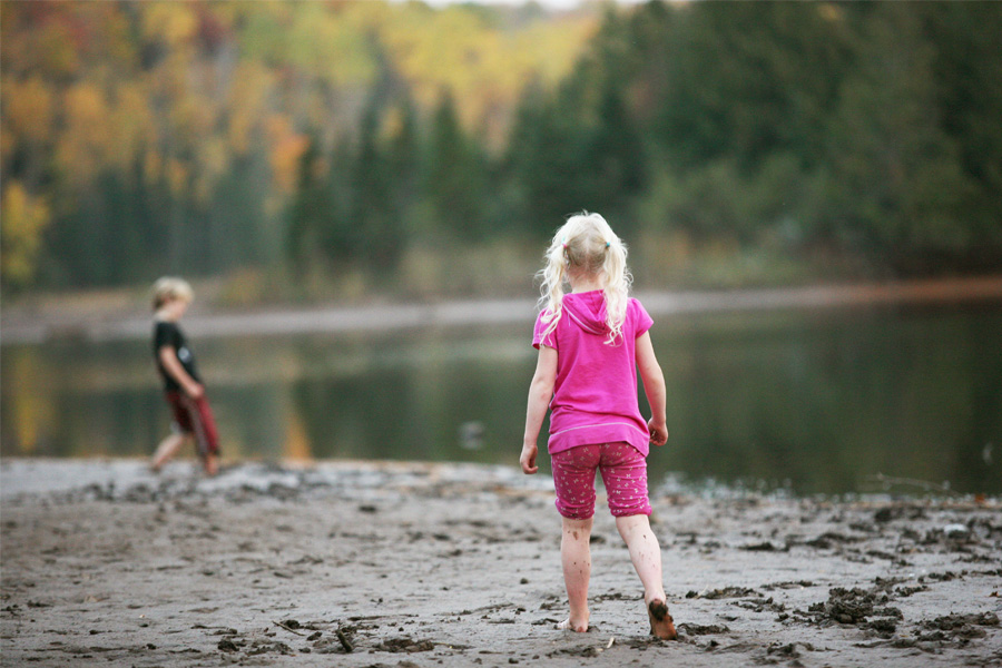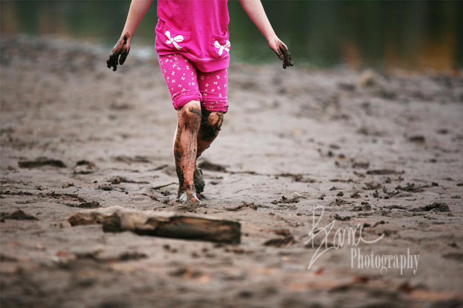 The lake at Pattison State Park was in the process of being drained down for the winter. (There is a dam at the top of the cascades before of the really tall waterfall starts). This meant that beyond the sandy beach next to the bathhouse, there was a large swath of mud of varying squishiness. After we had eaten and played, the sun was setting and the kidlets asked if they could play in the water, which of course meant wading through the mud to get to the water, and it turned out that the mud was actually more exciting than the water anyway. They tromped. They squished. They had a wonderful time, and then Dr. Peds took YaYa to the bathroom, and then The Banana fell right in the mud, which was a bit dramatic because she was very concerned about contracting a leach and that her pink clothes would not be able to be washed adequately.