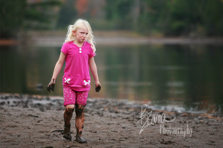 YaYa came to the rescue when she got back from the bathroom and helped The Banana rinse most of the mud off in the lake, and then we stripped people down to their underwear, drove them home and plunked them in the shower.