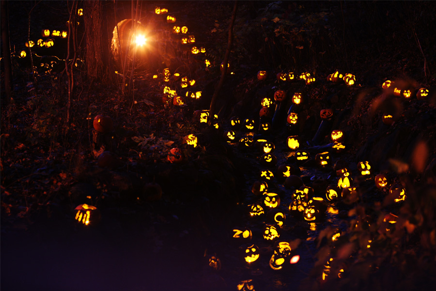I am here to tell you, that this was really, really neat. It kind of felt like a Christmas light tour, but way, way neater because it wasn’t cheesy at all. And it wasn’t scary. It was just kajillions of amazing pumpkins lining everything and grouped together. Some of them were so detailed! I could have spent hours examining all of them closely and taking tons of extended exposure pictures, but alas, we were there with nine children under the age of ten, who were very excitable, so there was significant crowd control involved and constant checking to make sure we did have all nine children with us in the dark.