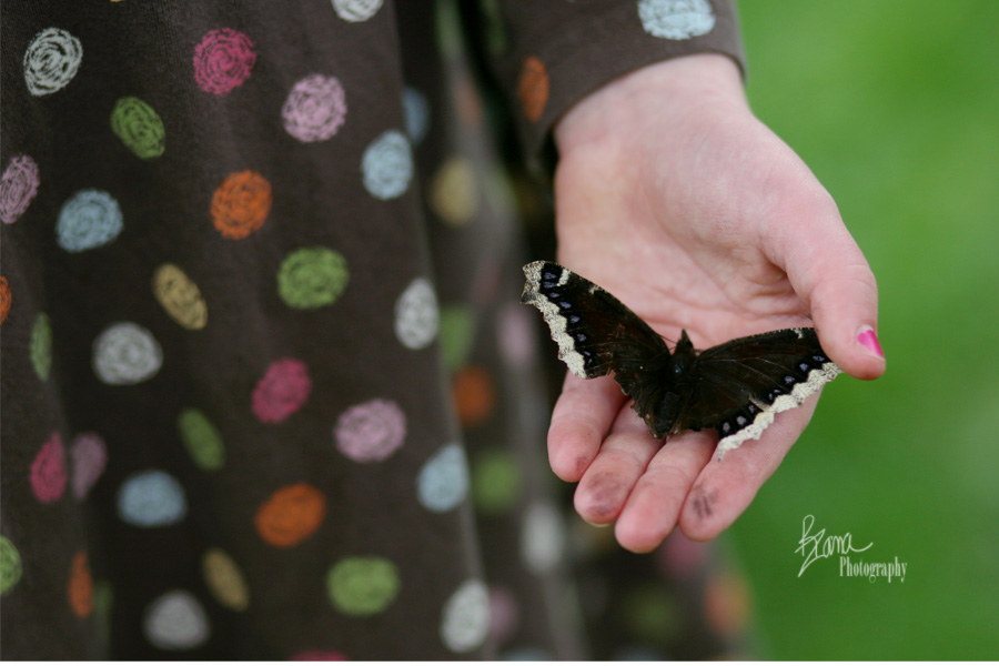 The Banana has started a dead butterfly collection. The neighbors happily gave her this beauty that was stuck to the front grill on their car. It has been joined by a couple of others she found stuck in crevices and corners next to the curb of different streets we’ve walked down.