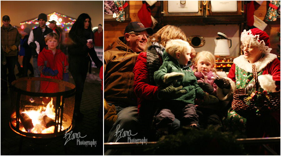 It was back to the van for a drive to Bentleyville, which was also busy, busy, busy! I knew it would be since A. It was the first weekend in December, and B. It was 42 degrees outside, and everyone wanted to be enjoying the lights and not freezing. We had a lot of fun walking through the park. So many lights! So many fun sights! The gigantic metal Christmas Tree is always fun to watch from different angles, and Mr. Trouble on Feet fell in love with the reindeer. He thought they were bears, but he really, really loved them. We roasted marshmallows and bypassed Santa, but almost at the end of the route, Grandpa Ron was inspired to visit Mrs. Claus. The Banana wanted to come along, and at the last minute Mr. TOF joined them too. Bentleyville can sometimes be a bit overstimulating for me, but it’s a fun tradition and we really enjoyed being able to share it with Grandma and Grandpa.