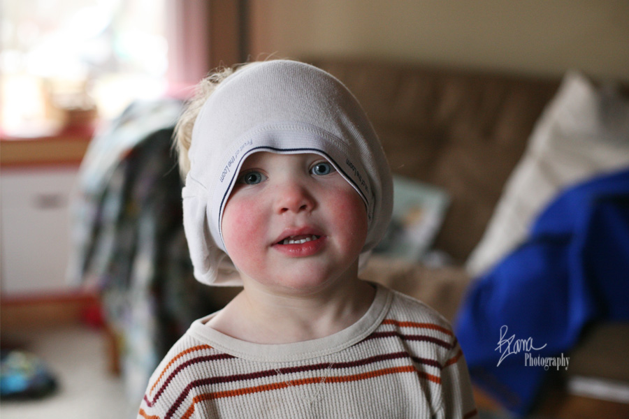 He and I spent the morning at MOPS. We walked in the door to our house and I unzipped his winter coat and walked to the garage to hang it up. When I turned around, there was the little brother clad in the big brother’s underwear, and stinking thrilled with himself. He had the best time bopping on the trampoline with underwear on his head until his lunch was ready. He laughed and laughed and pointed at his head and laughed some more.