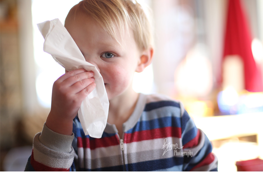 Our sick month has brought one certain thing to my attention: this overly cautious boy of mine is not a fan of snot. He can’t stand the stuff. He doesn’t like even a drip coming out of his nose, and has a nice handle on the whereabouts of the nearest Kleenex box no matter where he is in the house. When they were smaller, you would find my other children toddling around with giant green drips of snot hanging out their noses when they were sick. I was always chasing them down and battling them with a tissue in my hand. Sometimes that meant I had to tackle them to wipe their noses. Keeping their noses clean when they had colds was a lot of constant work punctuated by wailing and screaming. This boy brings me a tissue and points to his nose, waiting expectantly, about every two minutes. I think he takes after his Grandma Robbie. She doesn’t tolerate snot of any kind either.