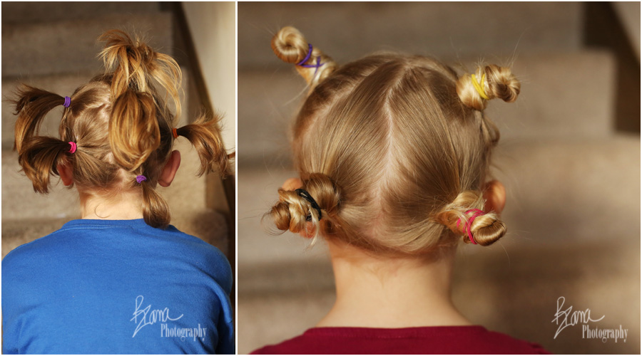 Earlier in the year there was a crazy hair day at school, but no one in this family wished to participate. However, when we remembered it was crazy hair night at AWANA, ten minutes before departure time, they were ALL over it. YaYa had crazy hair of her own making as well, but she was still working on it when we snapped these quick pictures before racing to the van. Mr. TOF was insistent on participating as well, even though he comes to Bible study with me instead of going to AWANA. He’s never one to pass up the opportunity to wear a good old ponytail, that one.