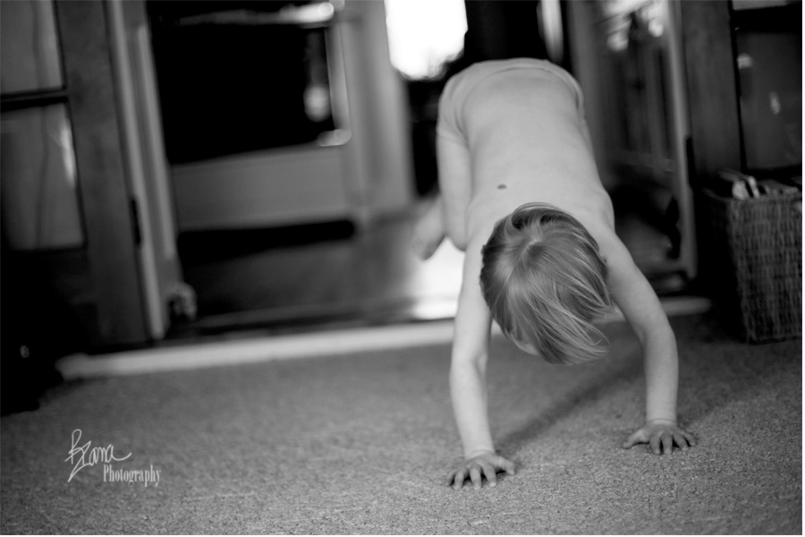 Earlier in the week, when it was warm and the snow was rapidly melting, Mr. TOF discovered the joy of shedding a few layers of clothing. He did this without any help from anyone else, and spent hours running around in just his underwear. He jumped. He leaped. He did plenty of wild spinning and wanted no part of putting any of his other clothes back on. These days he spends quite a bit of time trying to do cartwheels like his big sisters.