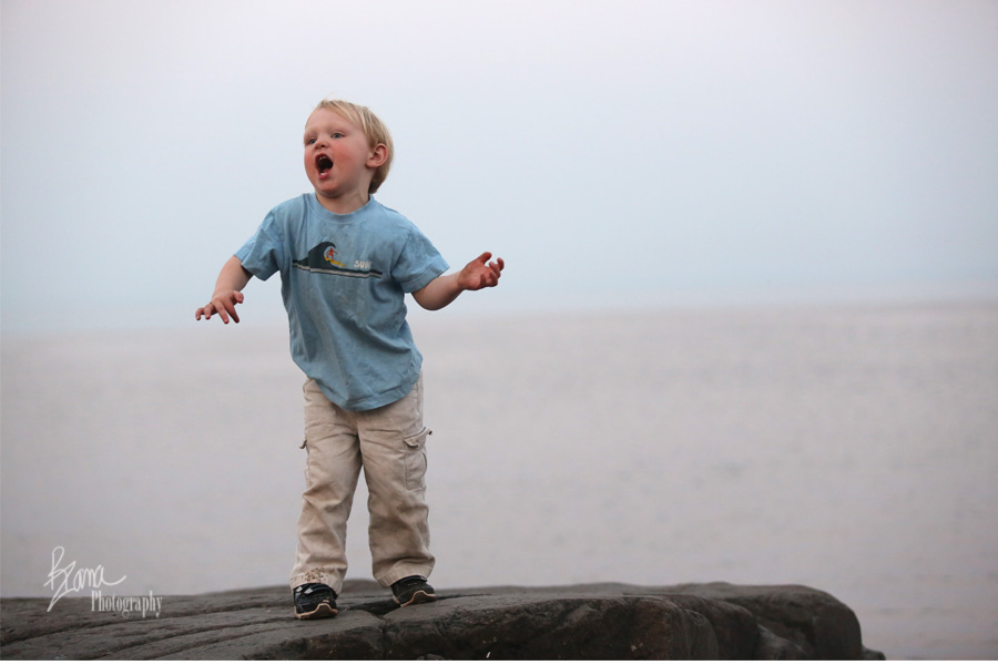 He does love to sing the alphabet. Mr. TOF has the melody down pat, and just substitutes random letters in a completely random order. The beauty of this is that the performance is always fresh for the audience, with an improvisational feel. The flat rocks at the beach apparently seemed like the perfect stage, and he climbed right up and started singing at THE TOP OF HIS LUNGS! Those wonderful, random alphabet letters were also accompanied by some major song and dance moves. There may have also been a cowboy “Yee HAW!” thrown in for good measure.