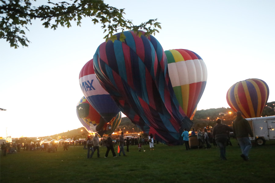 We got all the way to the bridge. In fact we were standing underneath the bridge and I said, “Time to turn around!” when YaYa looked up and around the corner and all the hot air balloons were standing up! All the kidlets gasped in delight and insisted on going to see them up close. I couldn’t say no, so we kept going! When we got close to the festival we had to walk our bikes because there were lots of people, but it was definitely worth it. The balloons were just starting to come down by the time we got there, but a few were still lifting up to give tethered rides. It was magical, and we were so blessed to end up seeing them, since that was the only time they stood up during the whole festival due to tricky breezy conditions.