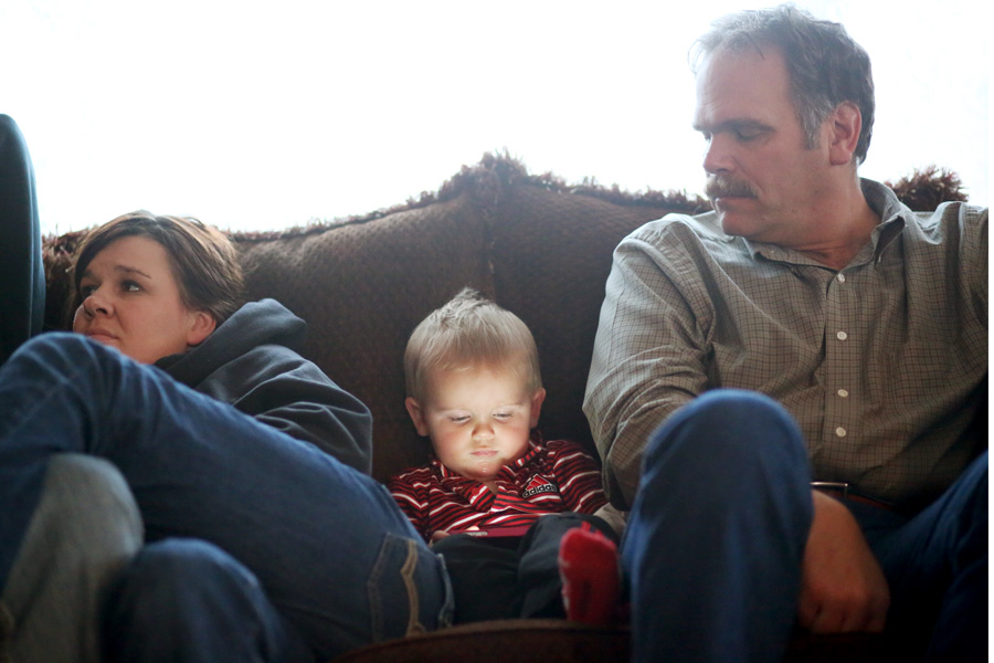 While his big brother conked out on Dad’s lap, Cousin Connor tried to show a skeptical Uncle Tom how the iPhone worked. Connor played until he zonked out himself.