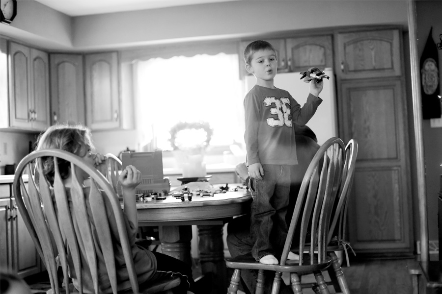 Cousins arrived! Mr. Trouble on Feet parked himself on the kitchen counter to watch his Papa feed cows, the same window that I used to sit by to watch my Papa feet cows when I was little. More people arrived, and there was eating and cleaning up and lots of energetic kids, all doing different things.