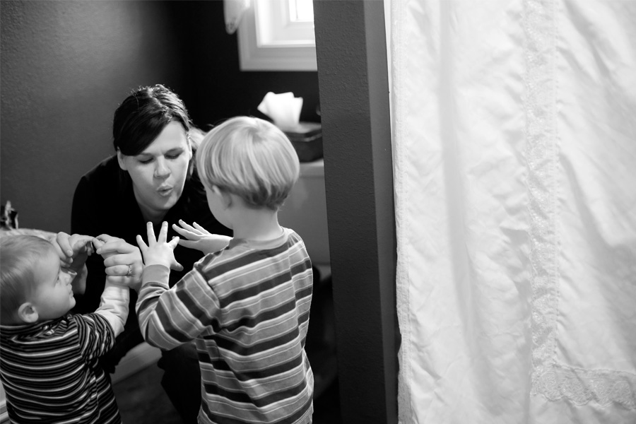 Auntie Jennifer took The Banana to the bathroom to paint fingernails. Two small people followed and insisted on colorful nails of their own.