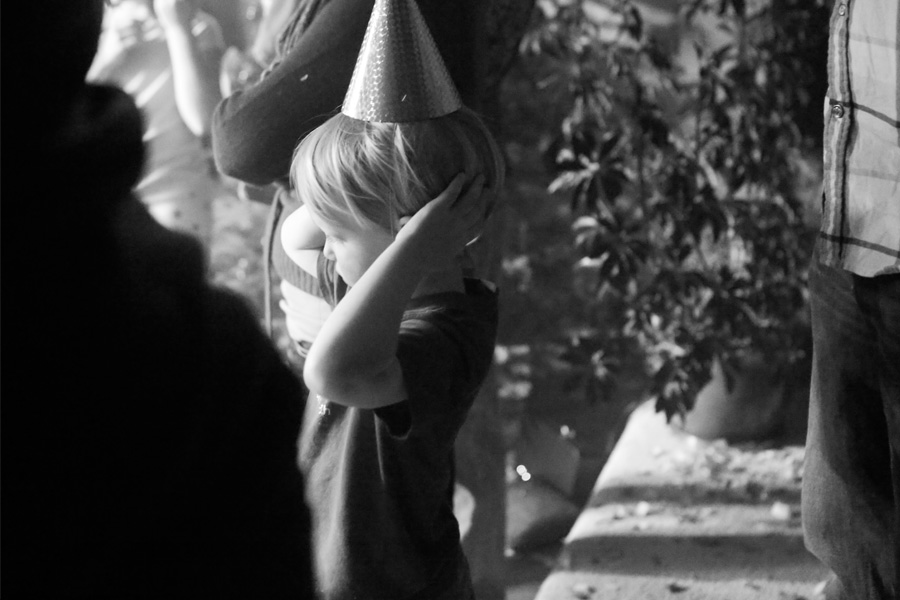 As we have the last several years, we rang in the new year (at a kind friendly time of 8:30) at the amazing bash our neighbors up the hill throw each year. The place was crawling with super excited kids, a collection of noisemakers, those papery blow horns, and dancing maniacs of short stature. Truly, it is such a blast each year. Mr. TOF loved the dance floor. He loved the noisemaking horns. He loved the party hats. Best of all he loved the party food. As always, it was hard to leave the party and come home.