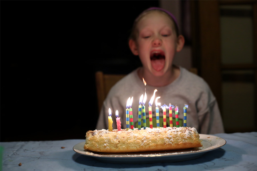 While she was busy laughing, Mr. TOF decided he’d waited long enough for these candles to be blown out.