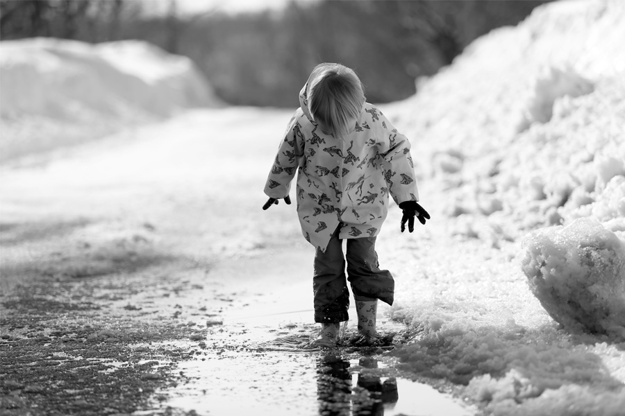 Tis the season of puddles! The temperature has climbed above freezing these past few days, which means the galoshes are out in full force, and Mr. Trouble on Feet’s favorite pastime is shoveling slush and going on puddle walks. Unlike his older siblings, Mr. Trouble on feet does not take joy in making enormous splashes and soaking himself to the bone, but he does truly love marching across deep puddles with a great deal of caution, closely examining what he’s walking through.