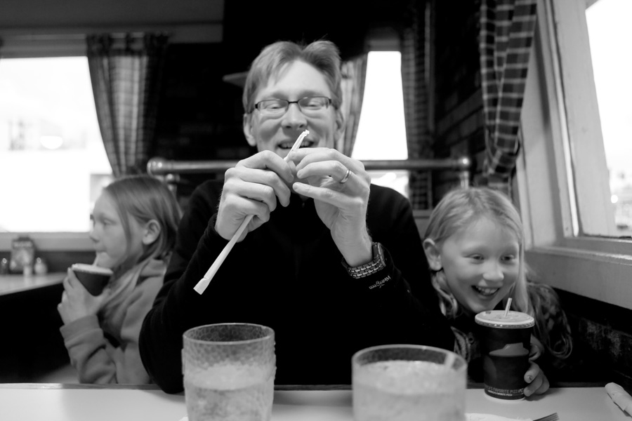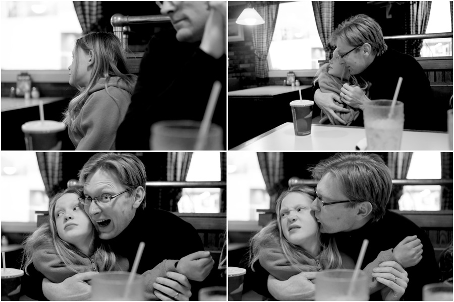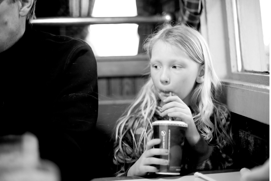 Of course, that many hungry people squeezed elbow to elbow in a booth means craziness. People were crawling under the table to switch places. Paper straw wrappers were flying around. Kidlets were bopping around on the seat (it doesn’t take long for the sugar rush of pop to kick in). YaYa was trying to pretend she didn’t know us. She also wasn’t thrilled that I was documenting our trip to Pizza Hut. Luckily she has a great dad.