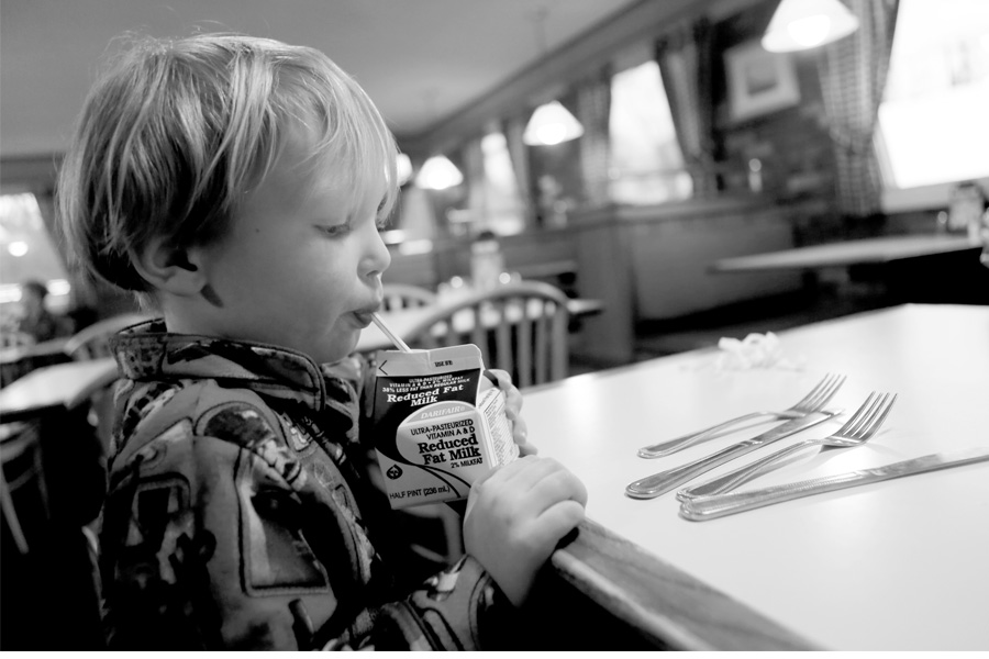 Mr. Trouble on Feet had milk. He was pretty excited that it came in a box.