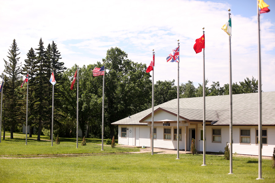 This building with all the flags is an old iconic centerpiece to the camp, Howard Hall.
