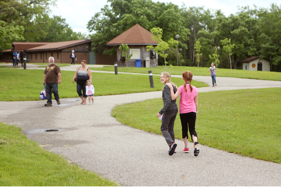 We went about our week, mailing off letters to camp when we could and hoping that they were having great time. Six days later it was time to pick up YaYa and head back to northern Minnesota. The other kidlets and I were up early to load the van and head back up to the border. We picked up YaYa’s stuff, and then had some time to kill before her concert, while she was at rehearsal. We ate a picnic lunch, courtesy of Grandma Robbie, and walked around the camp a bit. We relaxed under a tree in front of Howard Hall and watched all the people in line for lunch. Music camp is famous for its very, very long lunch lines. We were happy that we had brought our own lunch.