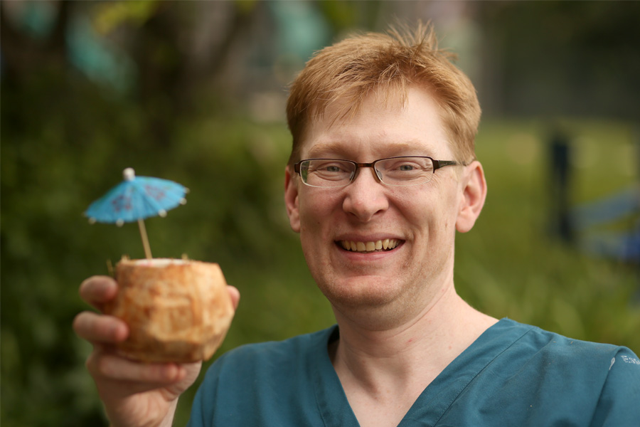 Dr. Peds carved a coconut and drank the coconut milk. Or maybe it was coconut water? I’m not an expert on coconut.