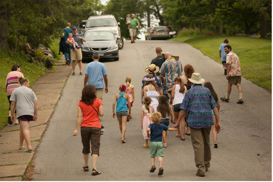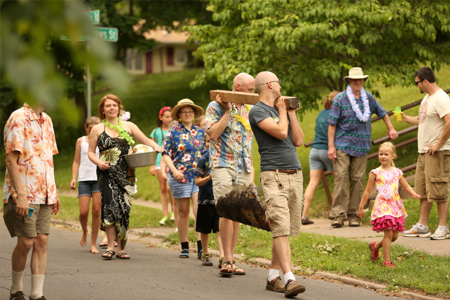 Eventually it was decided that the party would be held at the top of the hill, because it’s beautiful and wide open up there, and the neighbors at the top of the hill are gracious and know how to throw an amazing party. We needed a lot of people to come to the party because we were roasting a whole pig. The pig would be roasted half way down the street, and somehow I got out of pretty much all responsibility, I’m not sure how. The dads were up at dawn or before on Independence Day, preparing the pit and the pig for roasting. Some of the kids were there helping as well. (I slept in until after sunrise. I’m not of very much help in roasting a pig).