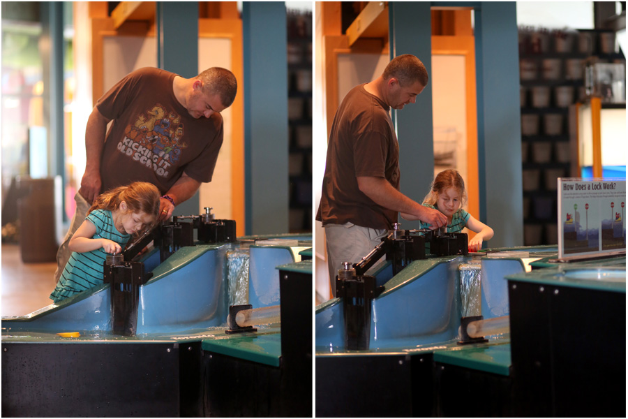 We spent one morning visiting the aquarium. Our family had not been there all summer. We were excited about the new ship wreck exhibit that included some sharks. A trip to the aquarium is never complete without a long time to explore the locks at the water table.