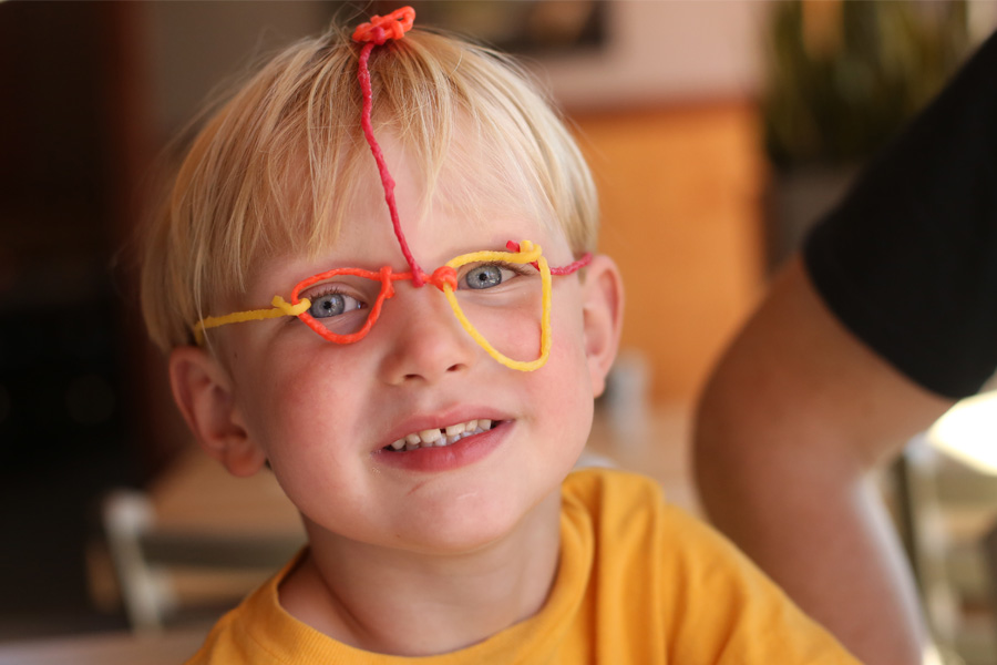 However, we made it up to him at lunch when we went out to eat at a new restaurant that just opened up. He ate an enormous pizza and loved playing with the Wikki sticks that came with the kids menu. Wikki sticks ARE a ton of fun, and we found a lot of things to make with them before our food arrived.