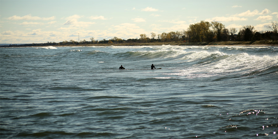 I’m pretty sure that I’ll never stop getting a charge over the fact that I live in Minnesota, hundreds and hundreds of miles from any ocean, and I still get to see surfers catching waves on a regular basis. Of course, the wind has to be just right, but still, it’s fairly ridiculous. What is even more ridiculous is that prime surfing weather is often when things around here turn even colder than usual: in the fall and even in the middle of the winter.